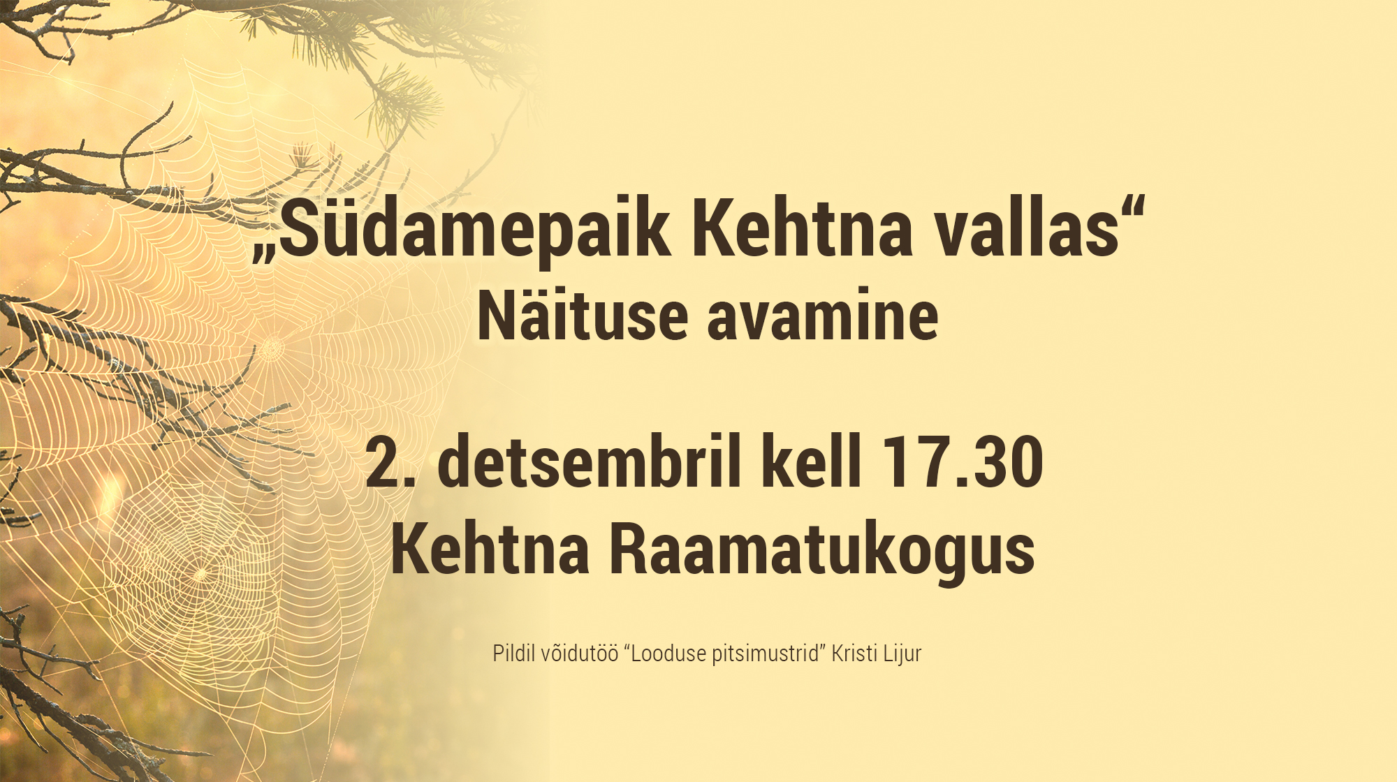Kehtna Raamatukogus avatakse 2. detsembril kell 17.30 fotonäitus „Südamepaik Kehtna vallas“. Näitusel on väljas…