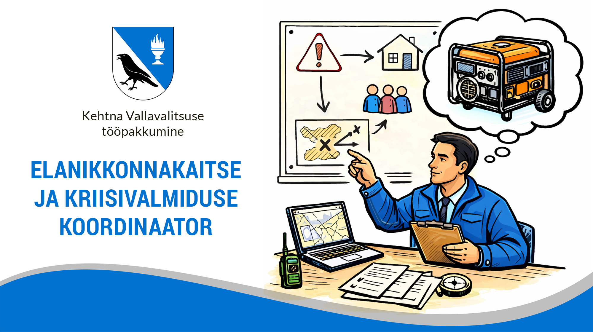 Töökoha peamine eesmärk on Kehtna valla haldusterritooriumil kohaliku omavalitsuse kriisideks ettevalmistamise ja elanikkonna kaitse alase tegevuse arendamine, planeerimine ning koordineerimine.