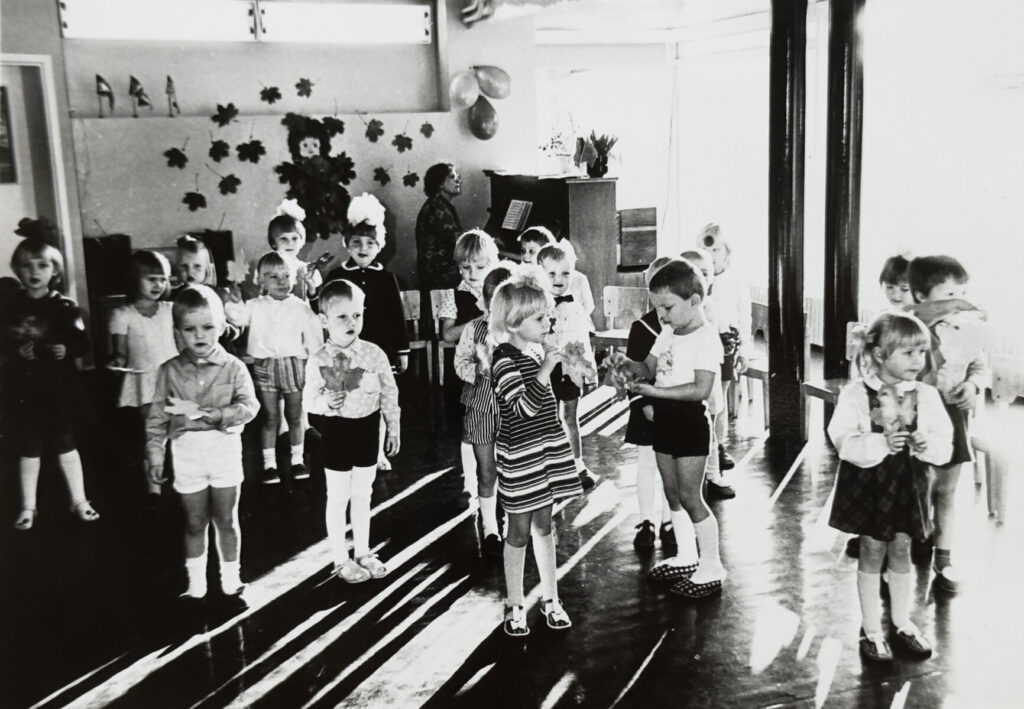 Fotol on tädi Saima klaverit mängimas lasteaias, tema kõrval on ka tänane vallavanem Eire Endrekson, kes oli tol ajal tema kasvandik.